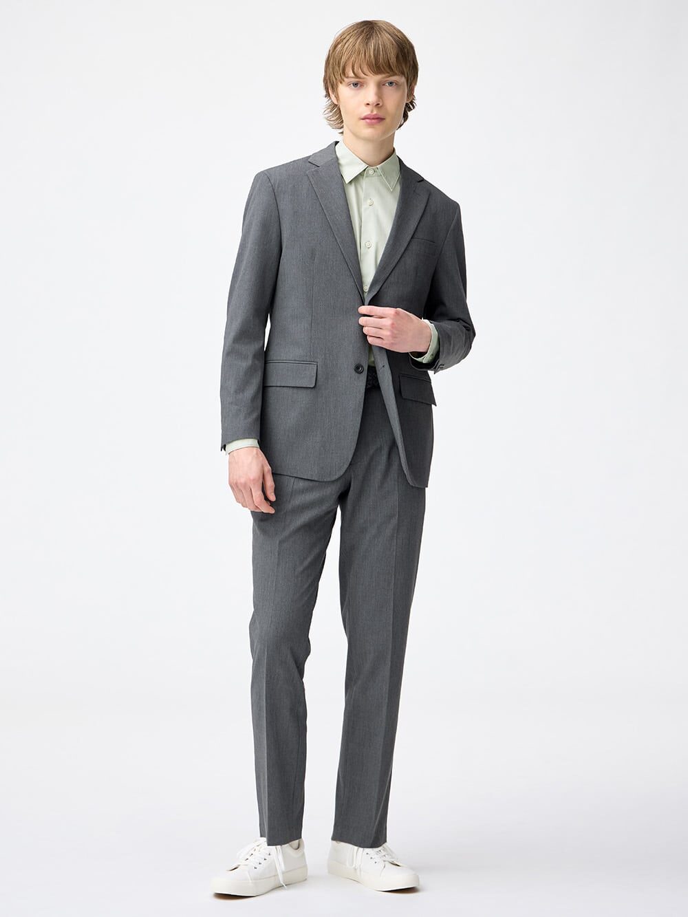 GUにはスーツというカテゴリの商品はなく、「テーラードジャケット」と「テーパードパンツ(トラウザー)」などを組み合わせて着る形になります。つまり正確に言うとスーツスタイルというより「セットアップ」のスタイルということですね。