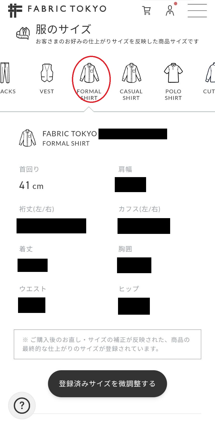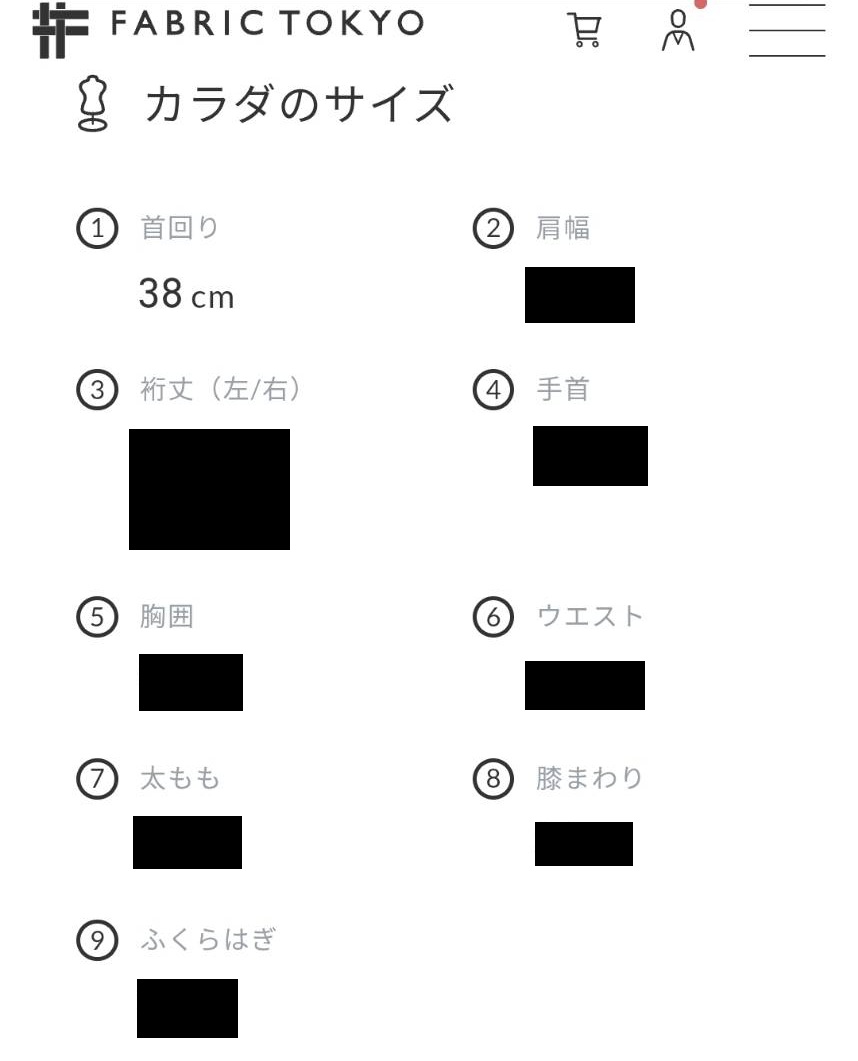 各ネットオーダー店の入力項目にそのまま流用できそうであれば何よりですし、あるいは各入力項目に従って自分で採寸しながら、ファブリックトウキョウのサイズとズレがないか確認用に使うのももちろんアリでしょう。一つ指標があることによって、少なくとも大きな失敗は防ぐことができるというわけです。