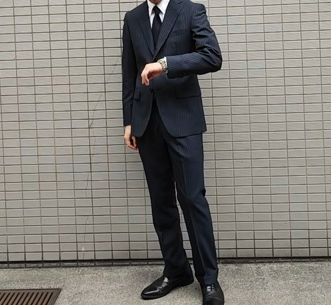 サイズ感ピッタリで、さすがにかっこいいですね……。私も2万円の最安生地で作ってみましたが、とても満足のいく一着を仕立てることができました。