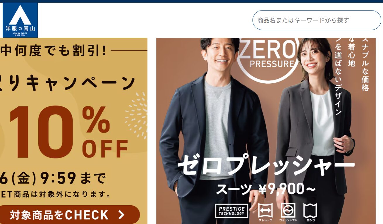 洋服の青山は、幅広い年齢層を対象にした紳士服を扱う大手アパレルチェーンです。