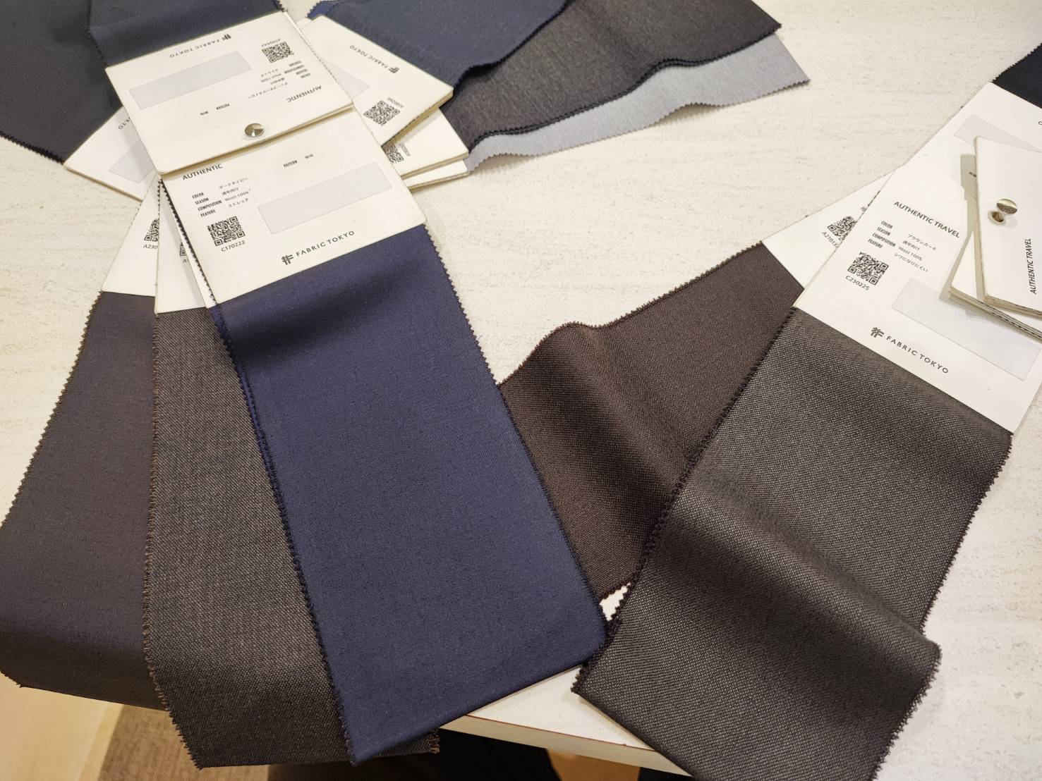 「AUTHENTIC」(税込み6.9万円)というシリーズが同社の一番の売れ筋の生地なのですが、それに次ぐくらい人気のこの「AUTHENTIC TRAVEL」は、もう少しマットな質感で、さらにシワになりにくい織り方になっているのが特徴です。