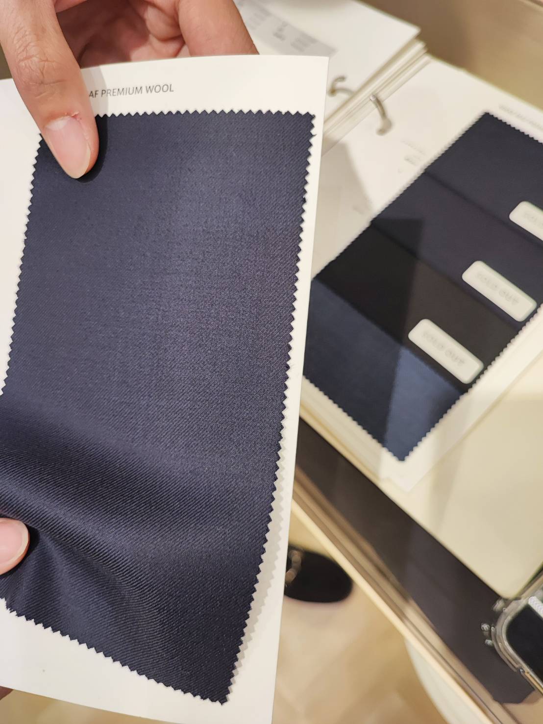 4万円ほどかかる最低価格帯の商品の場合、選べる生地はウール100%ではなく、ポリエステルを50%程度含みます。ウール100%の記事で仕立てようとすると6.9万円かかってくるので、イージーオーダー(パターンオーダーよりもワンランク上)だとしても、やや高めかなという印象です。昨今はポリエステル混でもしっかりウール見えする生地は多いですし、「かっこいいスーツ」に重要なのは生地よりもサイズ感やフィット感ですから、生地の価格だけで良し悪しを比較できるものではありませんけどね。