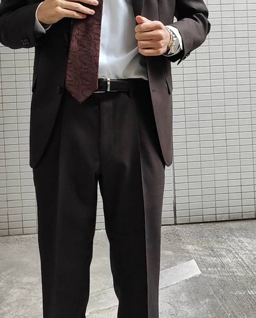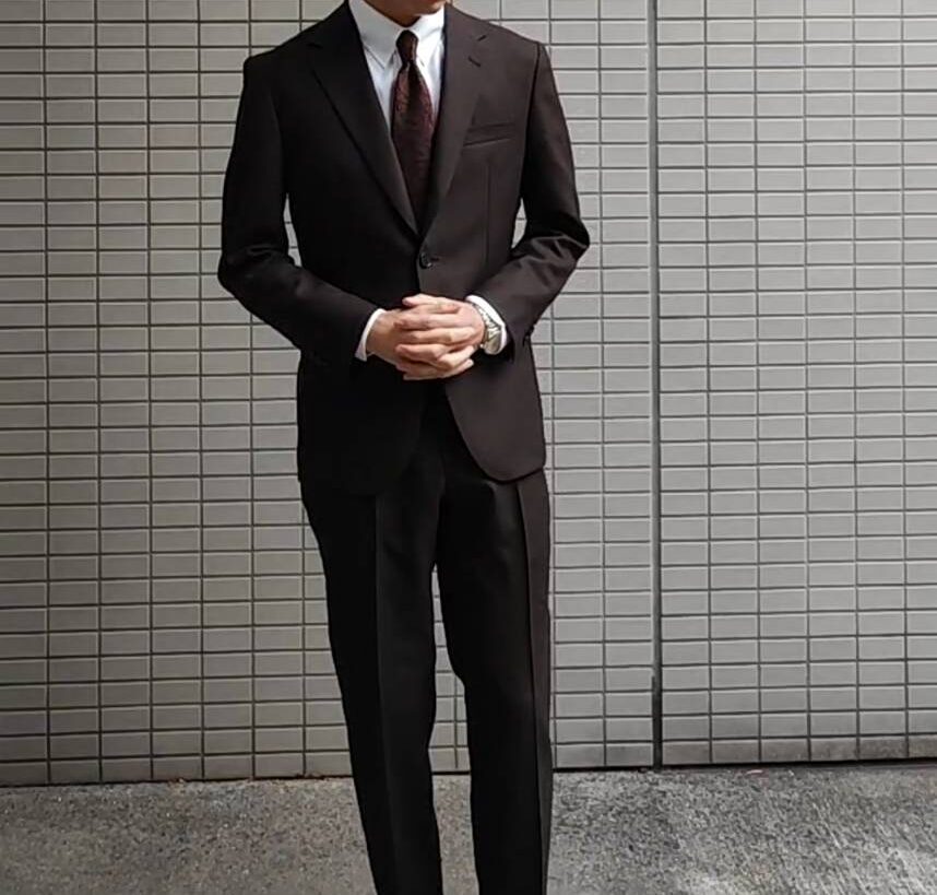 生地感はとても上品な光沢がありつつも、英国生地のような良い意味でのゴワゴワ感もあり、まさに「日常使いの良いスーツ」という感じ。これ以上光沢が強いと「気合入ってるな」感が出てきそうですが、このくらいだと自然なかっこよさがあって、個人的にとても気に入りました。
